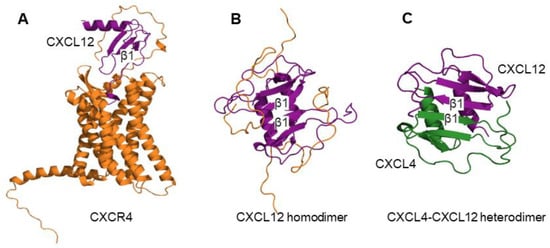 - Nguyen, K.T.P.; Druhan, L.J.; Avalos, B.R.; Zhai, L.; Rauova, L.; Nesmelova, I.V.; Dreau, D. CXCL12-CXCL4 heterodimerization prevents CXCL12-driven breast cancer cell migration. Cell. Signal. 2020, 66, 109488. [Google Scholar] [CrossRef]