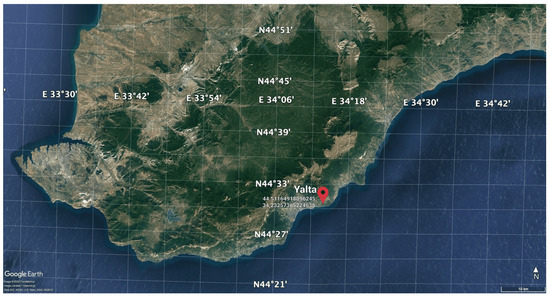Location of the field experiments (Yalta, Crimea). The map is based on an image from ©Google, 2023.