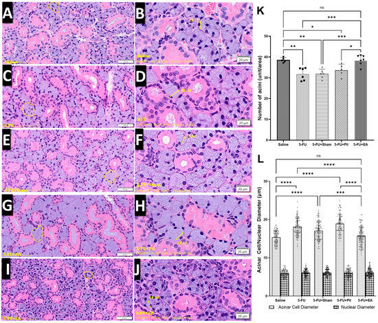 2.3. Observation of SMG Hematoxylin and Eosin Staining: EA Treatment Prevented the Decrease in Acini Number and the Increase in Acinar Cell Size Induced by 5−FU