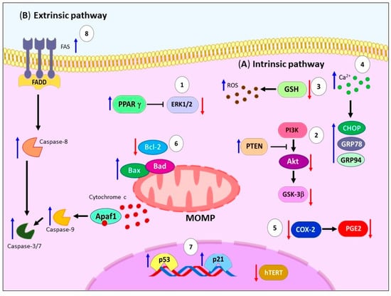 Taken together, these findings suggest that GLA predominantly induces intrinsic apoptotic pathway through mechanisms associated with the generation of oxidative stress. However, information regarding the involvement of GLA in the extrinsic pathway is limited, and further investigations are required to determine its role in the pathways that trigger extrinsic apoptosis.
