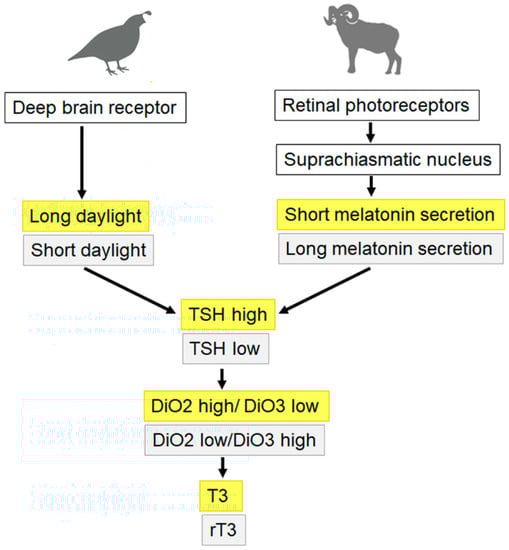 - Nakayama, T.; Yoshimura, T. Seasonal Rhythms: The Role of Thyrotropin and Thyroid Hormones. Thyroid 2018, 28, 4–10. [Google Scholar] [CrossRef]