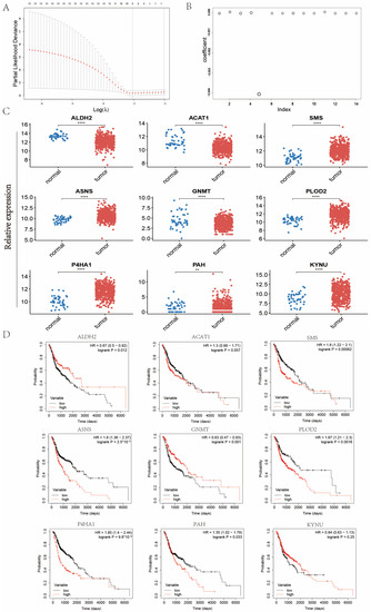 4.4. Screening of Survival-Related Amino Acid Metabolism Genes