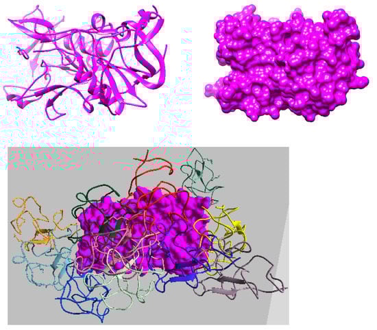 - Pettersen, E.F.; Goddard, T.D.; Huang, C.C.; Couch, G.S.; Greenblatt, D.M.; Meng, E.C.; Ferrin, T.E. UCSF Chimera—A visualization system for exploratory research and analysis. J. Comput. Chem. 2004, 25, 1605–1612. [Google Scholar] [CrossRef] [PubMed]