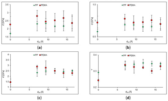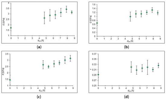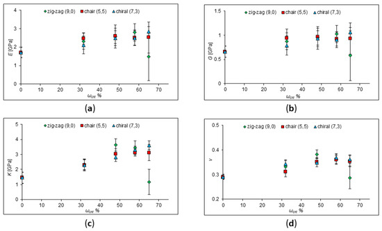 - Singh, A.; Kumar, D. Effect of temperature on elastic properties of CNT-polyethylene nanocomposite and its interface using MD simulations. J. Mol. Model. 2018, 24, 178. [Google Scholar] [CrossRef] [PubMed]