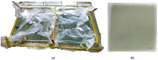 Photo: (a) VaRTM of the FGRP sample; (b) cured FGRP sample.