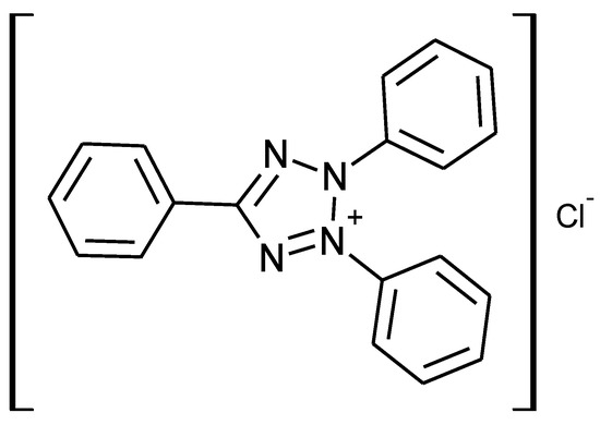 Complex (TPhTz)2[CuBr4] was obtained from an HBr acidified aqueous solution of copper(II) oxide with an ethanol solution of 2,3,5-triphenyltetrazolium chloride with Cu(II):TPhTz molar ratio 1:1. An elemental analysis of the compound showed that the complex has a composition with Cu(II):TPhTz molar ratio 1:2. The complex is highly soluble in alcohol, acetone, water and mineral acids. The compound does not dissolve in hydrocarbons.