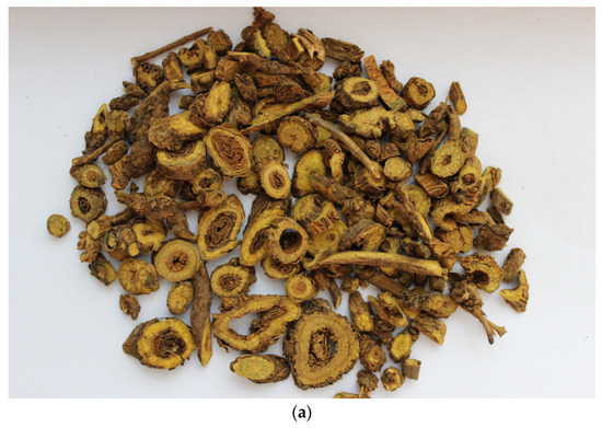 Scutellaria baicalensis. (a) Plant roots—medicinal part (figure from work L. Xin [30]), (b) public cadastral map of Russia, which reflects the habitat of the plant.