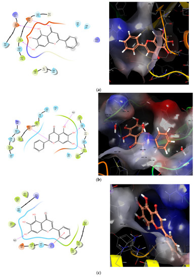 Molecular docking was performed to predict the molecular interaction of baicalin with test cultures. The Reaxys database was searched for the selection of target proteins. Cases were chosen for baicalin to study activity against proteins important for bacterial growth. We identified critical systems that, when inhibited by baicalin, will prevent bacterial growth and exert an antimicrobial effect. Docking was performed against regulatory protein RhlR (Escherichia coli, Wild), transcriptional activator protein LasR (Escherichia coli, Wild), an extremely important target of coronavirus 3CLprotease (Coronavirinae, Wild) (Figure 11).
