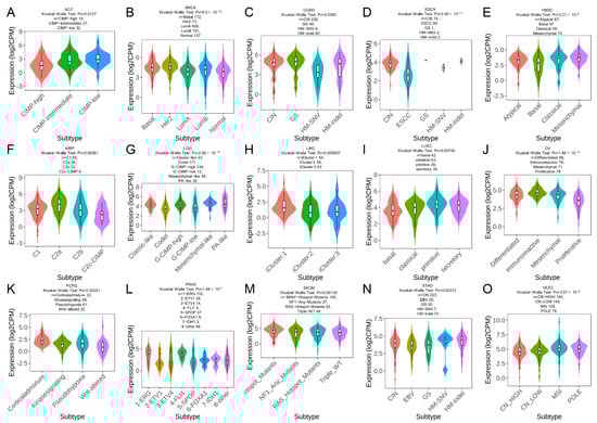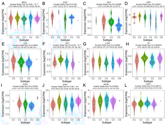 2.7. TRPM2 Expression in Different Immune and Molecular Subtypes of Cancers