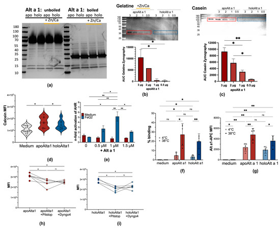 4.6. Silverstain, Casein, and Gelatine-Zymography with apo–/holoAlt a 1
