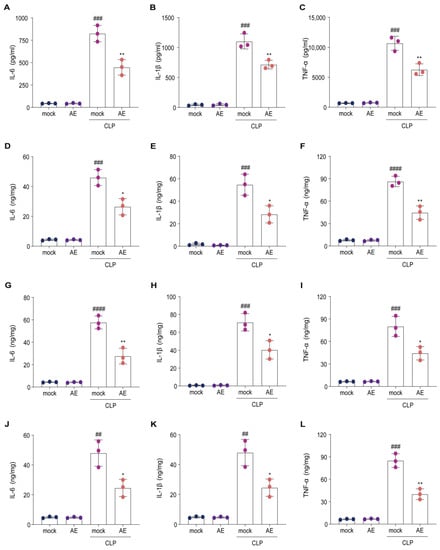 2.8. AE Inhibited the CLP-Induced Inflammatory Response