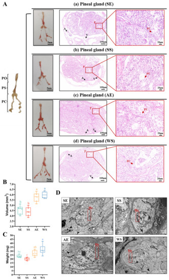2.2. Seasonal Photoperiods Affect the Morphologic Characteristics of the Pineal Gland