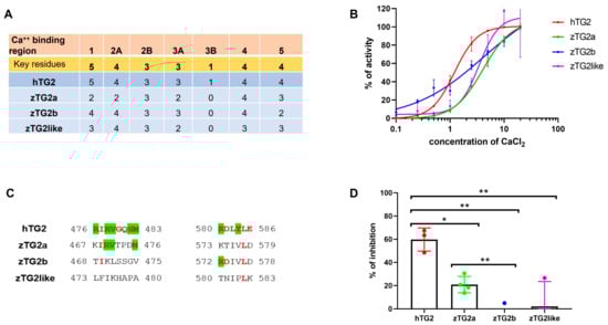 2.4. Recombinant zTGs2 Proteins Have a Ca2+-Dependent Activity