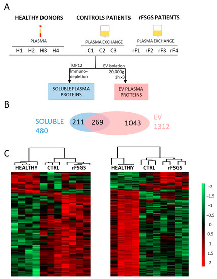 2.3. Analysis of Soluble and EV Plasma Proteomes from rFSGS Patients