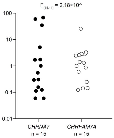 4.1.1. CHRNA7 and CHRFAM7A Expression under the Resting Conditions