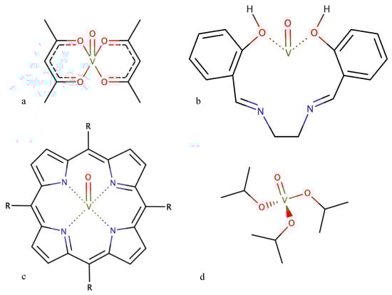 - Adão, P.; Costa Pessoa, J.; Henriques, R.T.; Kuznetsov, M.L.; Avecilla, F.; Maurya, M.R.; Kumar, U.; Correia, I. Synthesis, Characterization, and Application of Vanadium−Salan Complexes in Oxygen Transfer Reactions. Inorg. Chem. 2009, 48, 3542–3561. [Google Scholar] [CrossRef]