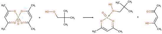 - Aschi, M.; Crucianelli, M.; Di Giuseppe, A.; Di Nicola, C.; Marchetti, F. Insights on the mechanistic features of catalytic oxidations of simple and conjugated olefins promoted by VO(acac)2/H2O2 system, in acetonitrile: A computational study. Catal. Today 2012, 192, 56–62. [Google Scholar] [CrossRef]