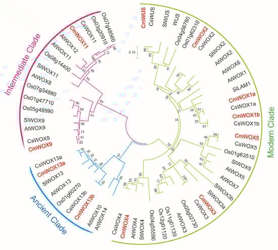 2.1. Phylogenetic Analysis of the CmWOX Family