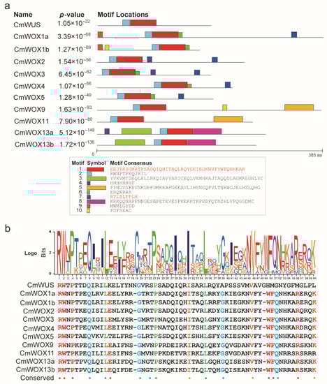2.5. The Conserved Motifs Analysis of CmWOX Proteins