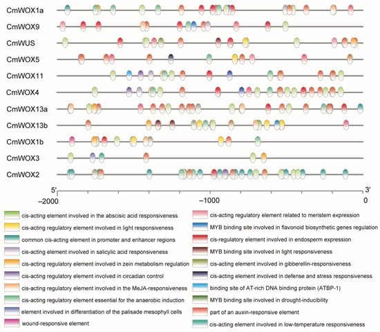 4.4. Putative Promoter Region Analysis of CmWOX Genes