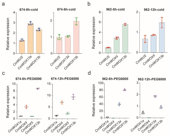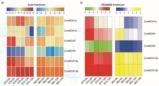2.9. The Expression Level of CmWOX Genes under Cold and PEG6000 Treatments