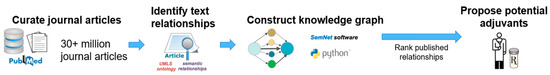 Future work in cross-domain text mining should address the integration of multiple different databases (beyond PubMed), improved semantic extraction of relationships for integration into the knowledge graph, and the ability to assess perceived data source quality [8]. Additionally, future work may be able to use existing relationships from the literature to predict unreported, novel relationships that have yet to be published. One such method is link prediction. For example, link prediction was used in conjunction with SemNet technology to identify novel relationships for the treatment of COVID-19 [11]. In addition to drug repurposing, link prediction models may also aid in the development of novel drug targets and formulations.
