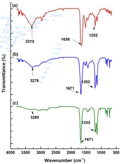 FT-IR spectra: (a) PD-L1-i peptide; (b) DOTA-PD-L1-i; (c) HEHA-PD-L1-i.