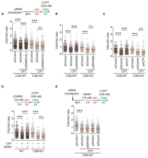 2.2. Loss of Fork Reversal Is Insufficient to Allow Restart of DNA Synthesis in CSB-KO Cells following 100 nM CPT-Induced Fork Stalling