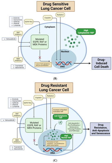 - Song, J.; Xie, L.; Zhang, X.; Hu, P.; Long, M.; Xiong, F.; Huang, J.; Ye, X. Role of YAP in Lung Cancer Resistance to Cisplatin. Oncol. Lett. 2018, 16, 3949–3954. [Google Scholar] [CrossRef]