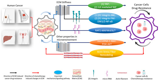 4. Roles of ECM Played in Regulating YAP and Drug Resistance in Cancer Cells