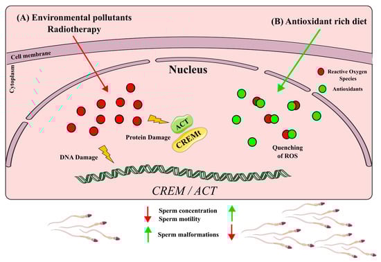 - Blendy, J.A.; Kaestner, K.H.; Weinbauer, G.F.; Nieschlag, E.; Schütz, G. Severe impairment of spermatogenesis in mice lacking the CREM gene. Nature 1996, 380, 102–105. [Google Scholar] [CrossRef]