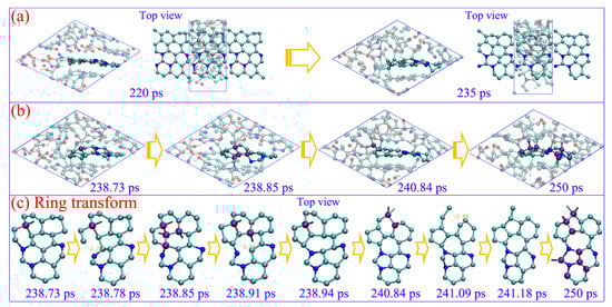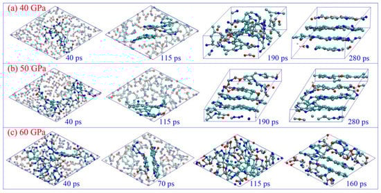 - Zhang, C.; Wen, Y.; Xue, X.; Liu, J.; Ma, Y.; He, X.; Long, X. Sequential Molecular Dynamics Simulations: A Strategy for Complex Chemical Reactions and a Case Study on the Graphitization of Cooked 1,3,5-Triamino-2,4,6-trinitrobenzene. J. Phys. Chem. C 2016, 120, 25237–25245. [Google Scholar] [CrossRef]