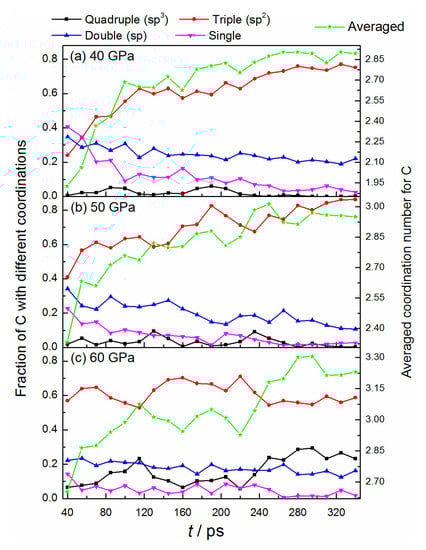 - Cheng, R.; Lu, W.-C.; Ho, K.M.; Wang, C.Z. Characterization of three phases of liquid carbon by tight-binding molecular dynamics simulations. Phys. Chem. Chem. Phys. 2020, 22, 14630–14636. [Google Scholar] [CrossRef] [PubMed]