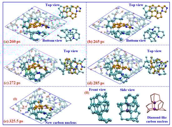 - Sorkin, A.; Adler, J.; Kalish, R. Nucleation of diamond from liquid carbon under extreme pressures: Atomistic simulation. Phys. Rev. B 2006, 74, 064115. [Google Scholar] [CrossRef]