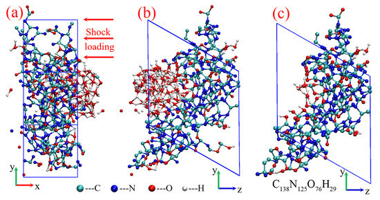 - Ge, N.-N.; Wei, Y.-K.; Song, Z.-F.; Chen, X.-R.; Ji, G.-F.; Zhao, F.; Wei, D.-Q. Anisotropic Responses and Initial Decomposition of Condensed-Phase β-HMX under Shock Loadings via Molecular Dynamics Simulations in Conjunction with Multiscale Shock Technique. J. Phys. Chem. B 2014, 118, 8691–8699. [Google Scholar] [CrossRef] [PubMed]