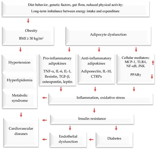 - Koenen, M.; Hill, M.A.; Cohen, P.; Sowers, J.R. Obesity, Adipose Tissue and Vascular Dysfunction. Circ. Res. 2021, 128, 951–968. [Google Scholar] [CrossRef]