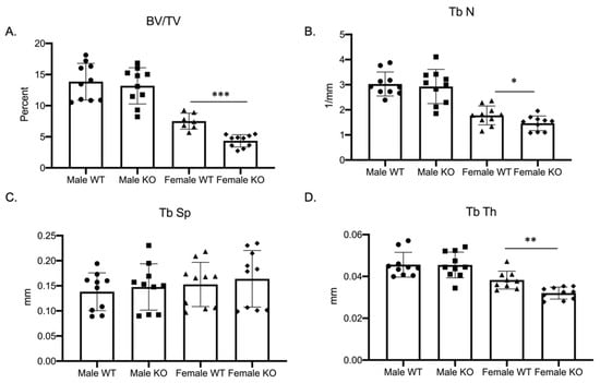 2.4. Female C-KO Mice Have Decreased Bone Formation