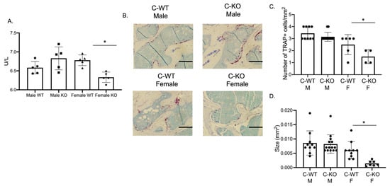 2.3. In Vivo Osteoclasts are Decreased in Female C-KO Mice