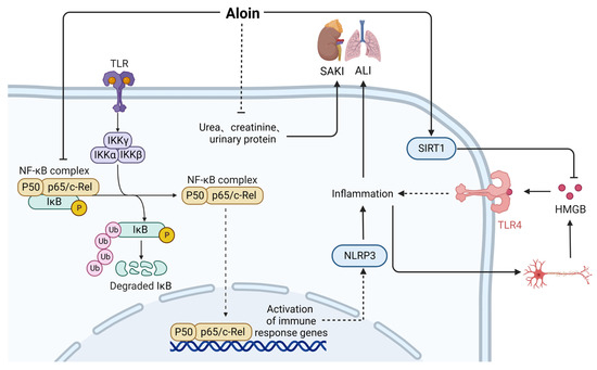 - Lei, J.; Shen, Y.; Xv, G.; Di, Z.; Li, Y.; Li, G. Aloin Suppresses Lipopolysaccharide-Induced Acute Lung Injury by Inhibiting NLRP3/NF-κB via Activation of SIRT1 in Mice. Immunopharmacol. Immunotoxicol. 2020, 42, 306–313. [Google Scholar] [CrossRef] [PubMed]