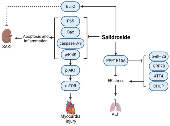 - Fan, H.; Su, B.J.; Le, J.W.; Zhu, J.H. Salidroside Protects Acute Kidney Injury in Septic Rats by Inhibiting Inflammation and Apoptosis. Drug Des. Dev. Ther. 2022, 16, 899–907. [Google Scholar] [CrossRef] [PubMed]