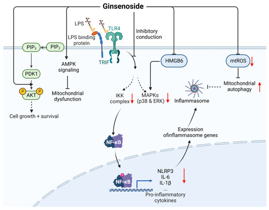 - Lee, W.; Cho, S.H.; Kim, J.E.; Lee, C.; Lee, J.H.; Baek, M.C.; Song, G.Y.; Bae, J.S. Suppressive Effects of Ginsenoside Rh1 on HMGB1-Mediated Septic Responses. Am. J. Chin. Med. 2019, 47, 119–133. [Google Scholar] [CrossRef] [PubMed]