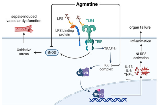 - El-Awady, M.S.; Nader, M.A.; Sharawy, M.H. The Inhibition of Inducible Nitric Oxide Synthase and Oxidative Stress by Agmatine Attenuates Vascular Dysfunction in Rat Acute Endotoxemic Model. Environ. Toxicol. Pharmacol. 2017, 55, 74–80. [Google Scholar] [CrossRef]