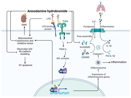 - Zeng, Y.; Du, X.; Jiang, W.; Qiu, Y. Anisodamine Hydrobromide Protects Against Acute Lung Injury in Septic Rats Induced by Lipopolysaccharide or Cecal Ligation and Puncture via Inhibiting Apoptosis and Pyroptosis. FASEB. J. 2021, 35. [Google Scholar] [CrossRef]
