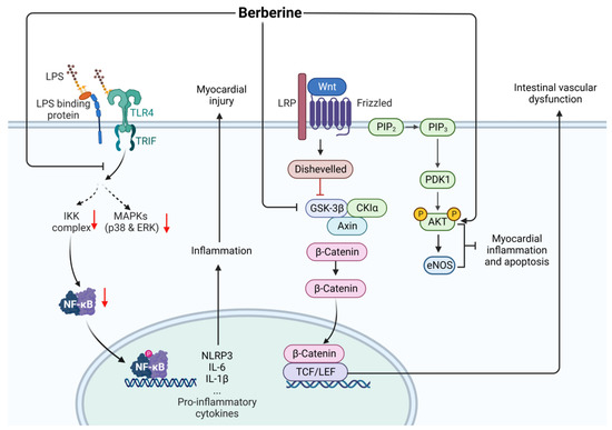 - Chen, H.; Liu, Q.; Liu, X.; Jin, J. Berberine Attenuates Septic Cardiomyopathy by Inhibiting TLR4/NF-κB Signalling in Rats. Pharm. Biol. 2021, 59, 121–128. [Google Scholar] [CrossRef] [PubMed]