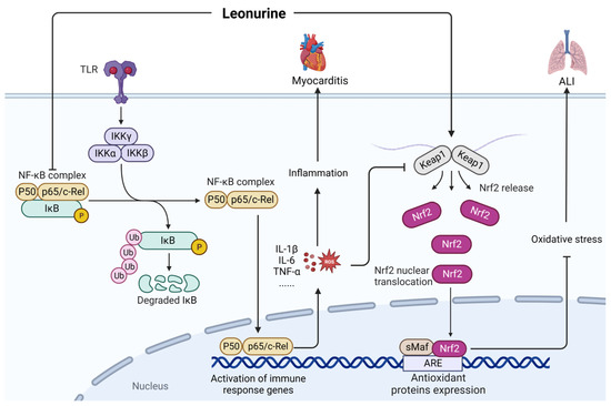 - Wang, R.; Li, D.; Ouyang, J.; Tian, X.; Zhao, Y.; Peng, X.; Li, S.; Yu, G.; Yang, J. Leonurine Alleviates LPS-Induced Myocarditis Through Suppressing the NF-κB Signaling Pathway. Toxicology 2019, 422, 1–13. [Google Scholar] [CrossRef] [PubMed]