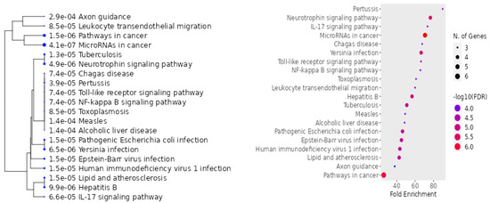 A dot-plot was performed using ShinyGO resource to represent the outcomes of KEGG pathway enrichment analyses carried out on miRNA-146a and its validated targets.
