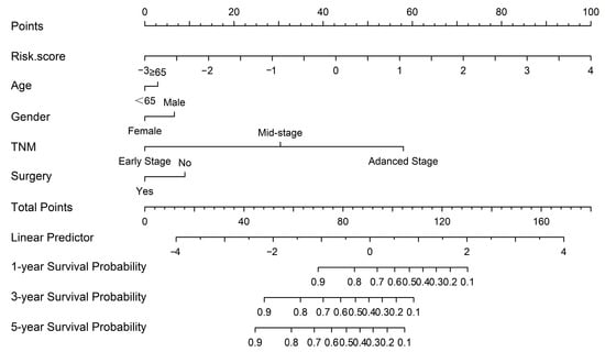 The nomogram was constructed based on five independent prognostic factors.