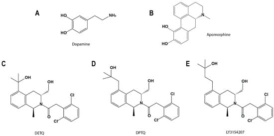 - Hao, J.; Beck, J.P.; Schaus, J.M.; Krushinski, J.H.; Chen, Q.; Beadle, C.D.; Vidal, P.; Reinhard, M.R.; Dressman, B.A.; Massey, S.M.; et al. Synthesis and Pharmacological Characterization of 2-(2,6-Dichlorophenyl)-1-((1S,3R)-5-(3-hydroxy-3-methylbutyl)-3-(hydroxymethyl)-1 -methyl-3,4-dihydroisoquinolin-2(1H)-yl)ethan-1-one (LY3154207), a Potent, Subtype Selective, and Orally Available Positive Allosteric Modulator of the Human Dopamine D1 Receptor. J. Med. Chem. 2019, 62, 8711–8732. [Google Scholar]