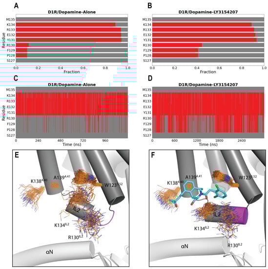 2.5. LY3154207 Compacts and Loosens the Extracellular and Intracellular Regions of D1R, Respectively