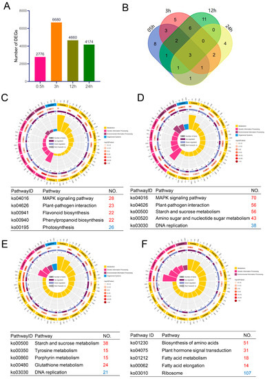 2.5. Identification of DE Salt Tolerance-Related Genes and Key KEGG Pathways